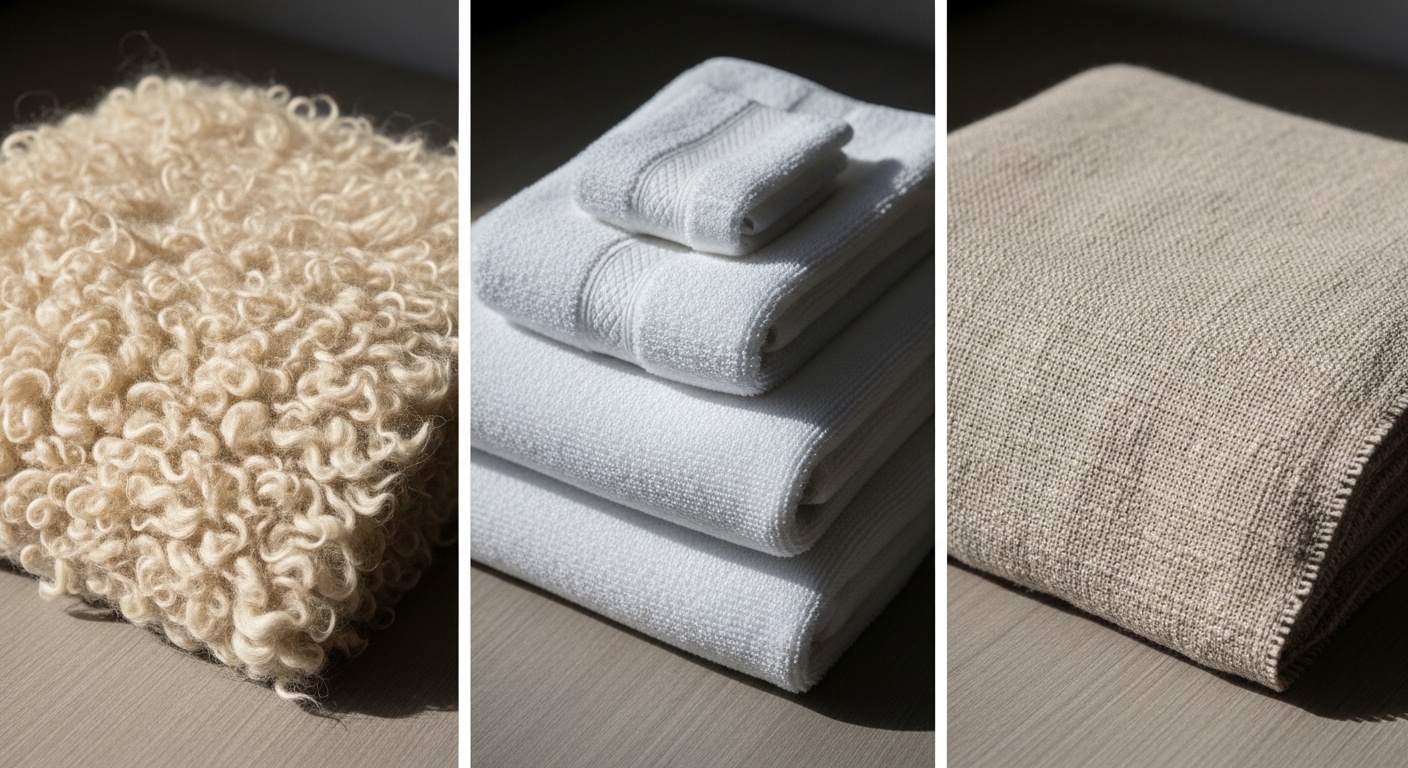 迷ったらコットン(タオル地)がおすすめ。今治タオルブランドの製品であれば品質も安心で、洗濯機で丸洗いできる手軽さが初心者にぴったりです。